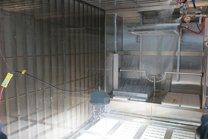 進到裡面,就可以看到一個設備齊全的雨淋測試區。