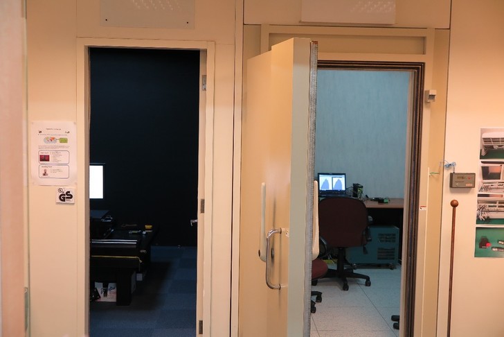 從一個實驗室到另一個實驗室,就會經過好幾道這像這樣的防火門。