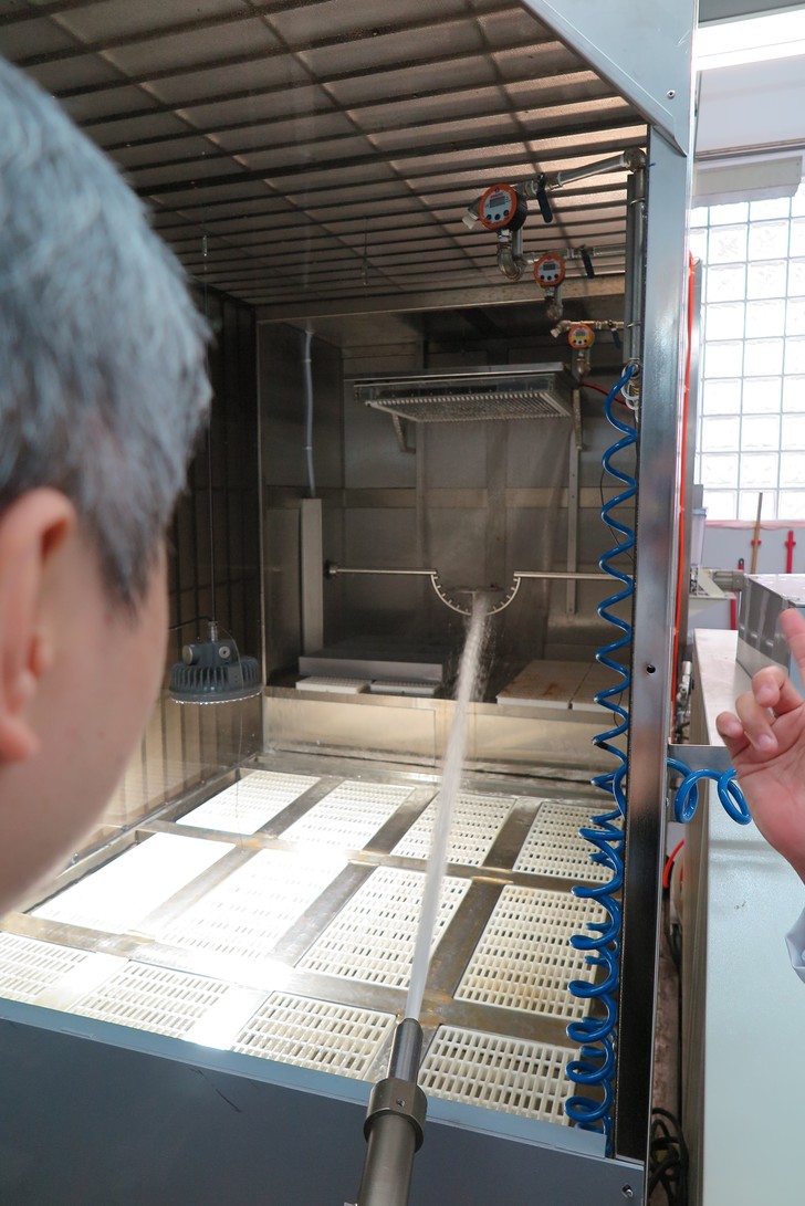 如果是要符合IPX3、IPX4的標準,則是將產品放在下面,下面那圈都是噴頭。差別是IPX3會轉60度;IPX4會轉180度。