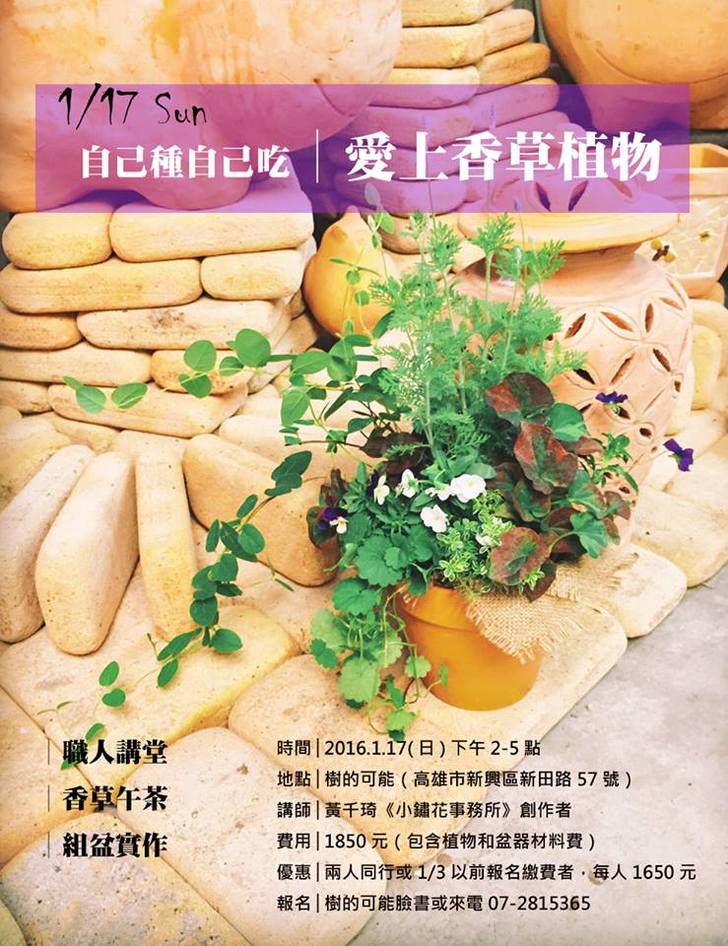 費用│1850元(包含植物5種以上和盆器,盆器直徑21cm 高17cm),學員可帶回市價約700元的香草盆栽成品