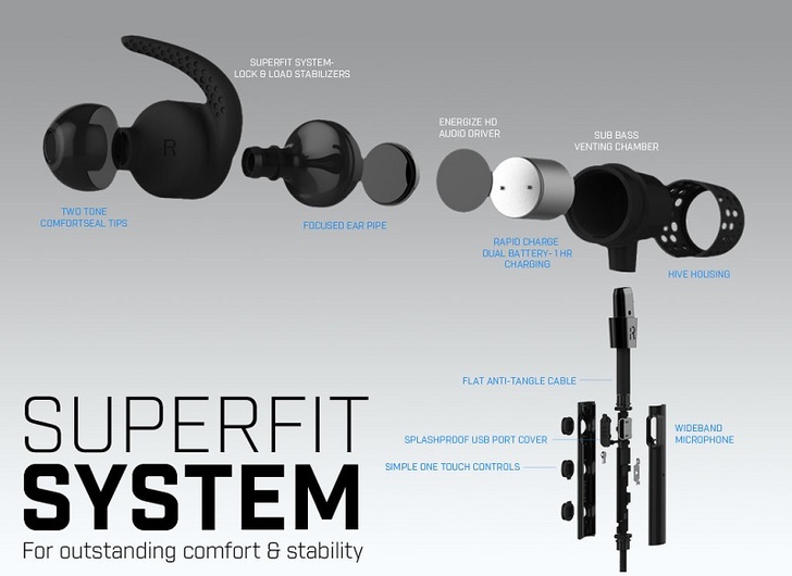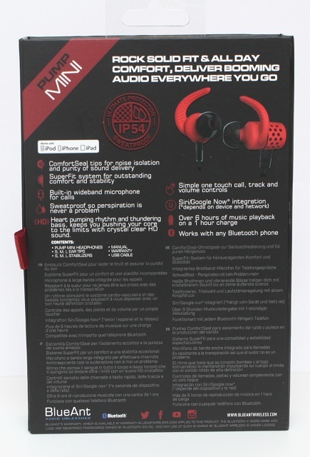 包裝的背面,有IP54的LOGO,註明了可以防塵防水,另外也有標示剛剛介紹的特色,就是SuperFit系統,另外還有HD高清聲音的水準。