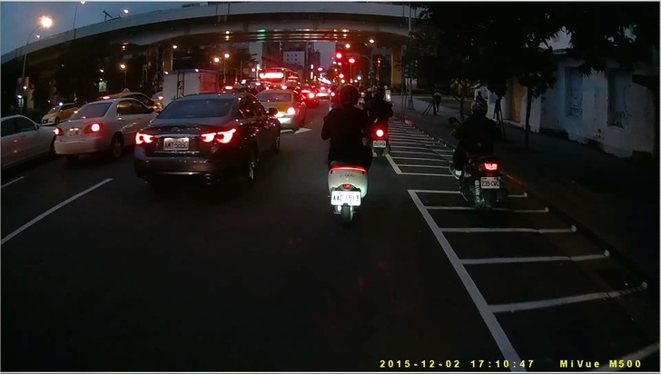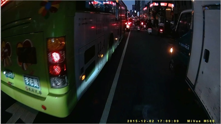 首先就是 Mio MiVue M500鐵金剛 的夜拍實測。估計可視角 約120度,抑震效果非常的好,台北市內坑坑洞洞的道路完全沒有對 Mio MiVue M500鐵金剛 造成影響,我抬頭,低頭,左右轉動,鐵金剛的畫面依然沒有絲毫抖動,白天拍攝效果一級棒,清清楚楚,所有影像如實呈現。唯一的缺點是,夜晚的錄影效果,畫面 銳利度 稍嫌不足,經常因為拍攝速度較快從眼前經過的車輛,產生牌照無法順利判讀的現象,但是瑕不掩瑜,我依然給予80分的高分。