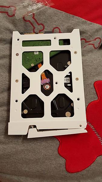 將這顆硬碟鎖到硬碟架上,硬碟架的螺絲有兩種(黑、銀),可以挑你喜歡的