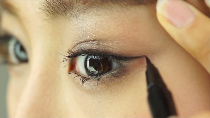 還有另一個訣竅是,沿著上眼皮往後拉,