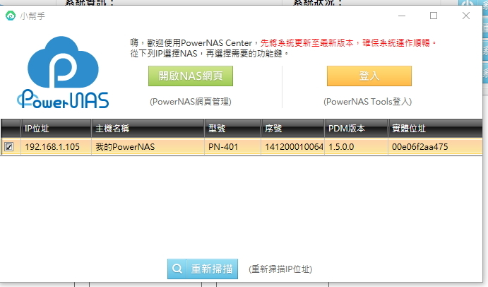 因為已經安裝好作業系統了,所以可以直接進入NAS,通常NAS廠會有一個尋找NAS的工具程式,詮力也不例外。