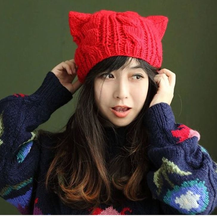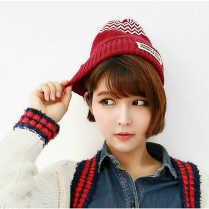 圓形臉的女孩們基本上各種款式的針織帽都很適合戴喔!