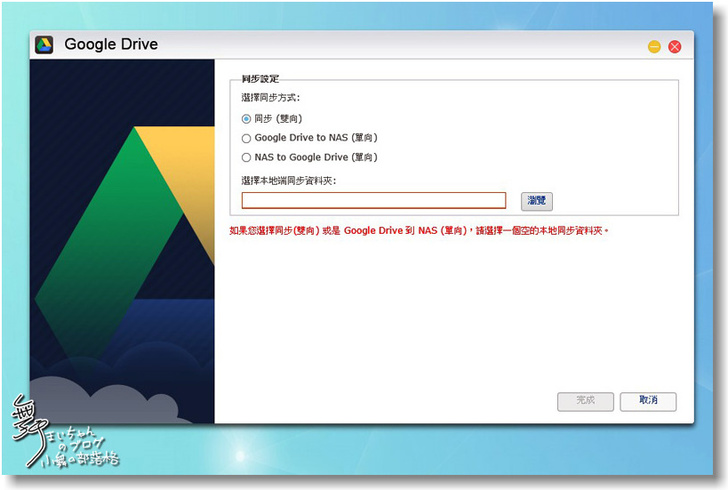 ▲接著來看想要單向或雙向的同步方式,並需要設定本地同步資料夾