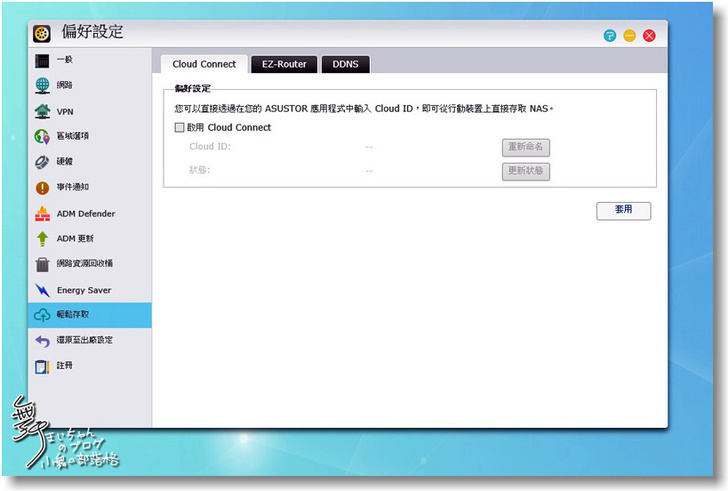 ▲但在外面要連線在家的ASUSTOR AS3102T需要先設定Cloud Connect;在「偏好設定」裡的『輕鬆存取」裡就可以找到