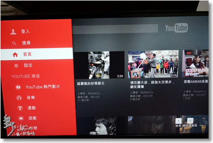 ▲把ASUSTOR AS3102T和螢幕的HDMI連接,就可以看到多種頻道,立馬選擇『Youtube』