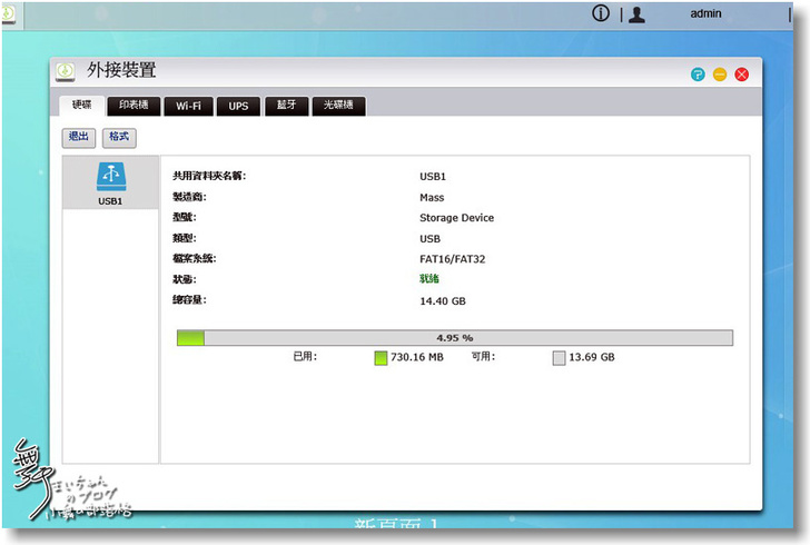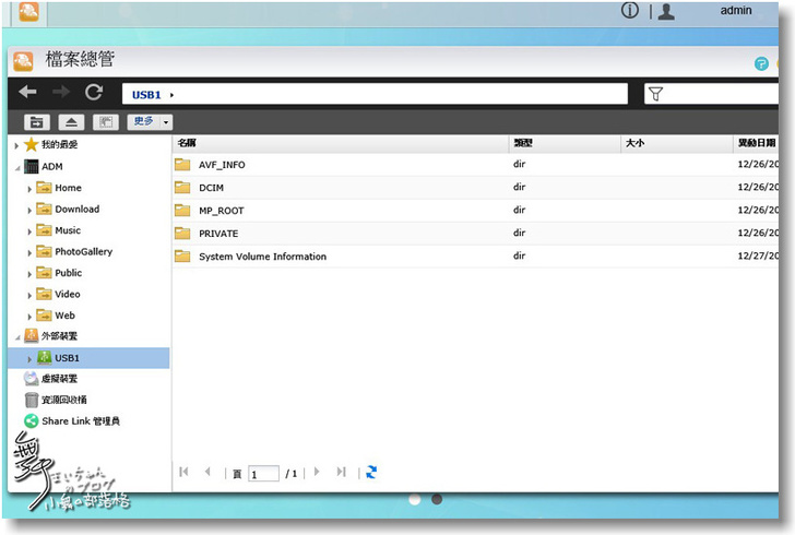 ▲把記憶卡放進讀卡機後,就直接插在ASUSTOR AS3102T的USB埠上,在主頁面有個『外接裝置」可以查看連接的USB內容
