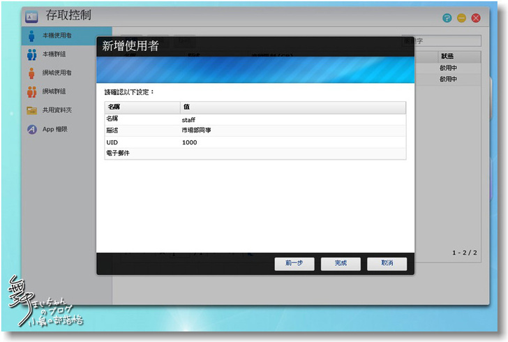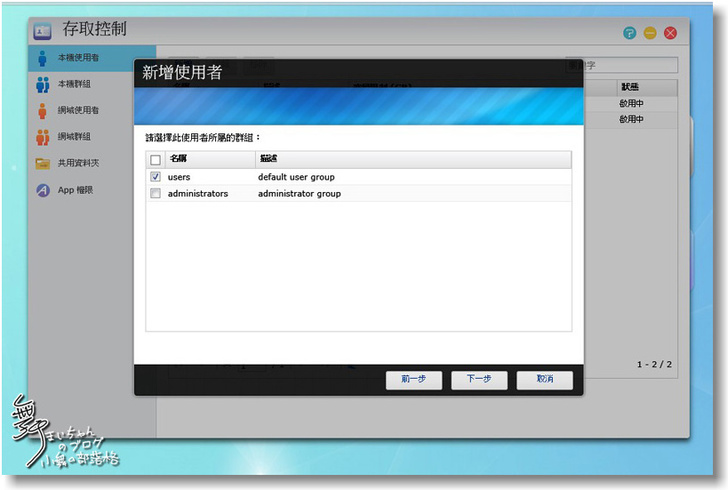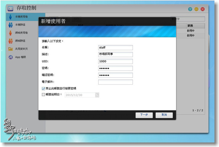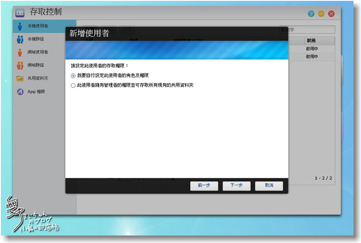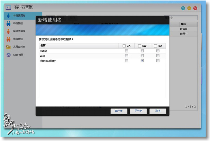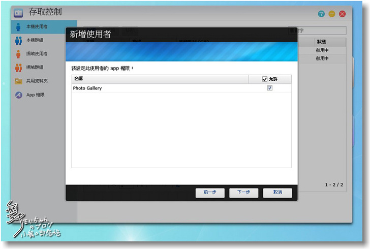 ▲另外華芸NAS可以安裝使用APP,所以也可以設定使用者可以使用那些APP的權限。