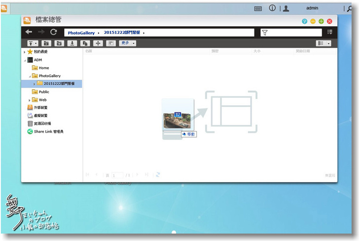 ▲在ASUSTOR AS3102T建立一個部門聚餐的目錄,並拖曳聚餐的照片