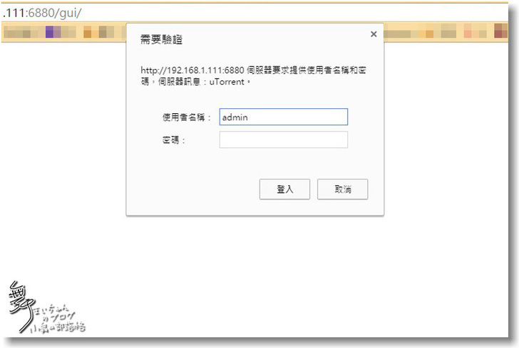 ▲看了一下APP的說明,原來帳號是admin,密碼空白就可以了