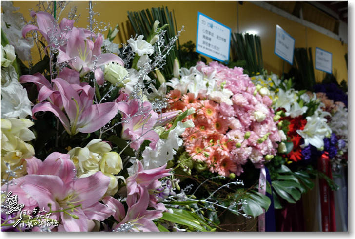 ▲進到B1的特區座位前,經過一小段路擺滿了各界送的慶賀花籃,真不愧是少男殺手