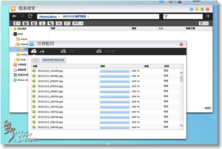 ▲Google Drive的檔案快速就備份到NAS囉,以後小組人員再傳檔案上Google Drive,系統都會幫我自動同步,真是方便。