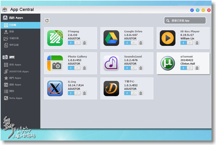 ▲籌辦晚會的準備工作緊鑼密鼓進行,之前大家都用Google Drive做共用資料的備份,既然ASUSTOR AS3102T這麼好用,當然要把雲端硬碟資料轉過來囉,APP Central裡提供有各種雲端硬碟的APP,我就先安裝《Google Drive》。
