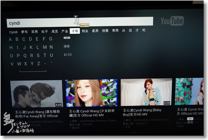 ▲開始來搜尋王心凌Cyndi等關鍵字,就會出現許多王心凌的官方MV,賓果!