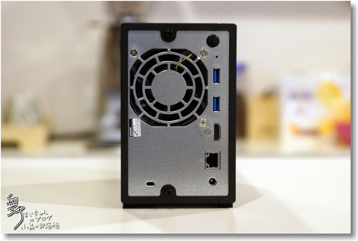 ▲背面則是一個散熱風扇的出風口,另外還有USB3.0埠x2,HDMI埠、網路孔及電源輸入孔。