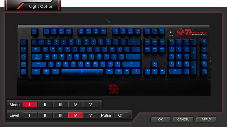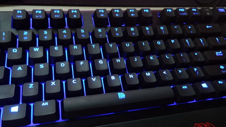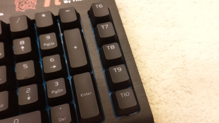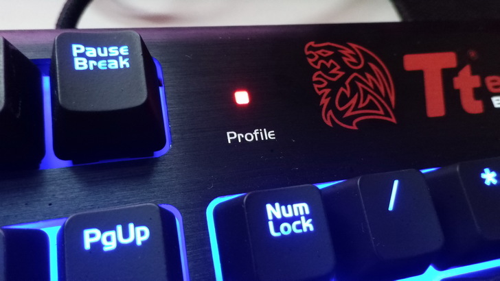 鍵盤右上就只有TT的LOGO和前面提到的Profile指示燈,Profile指示燈會依你切換設定檔而改變顏色