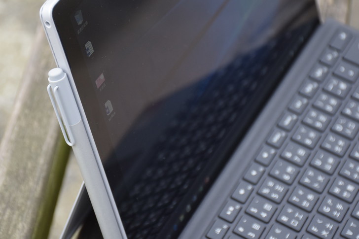 > ▼ Surface 手寫筆可以直接吸附在旁邊,在使用上很方便喔.