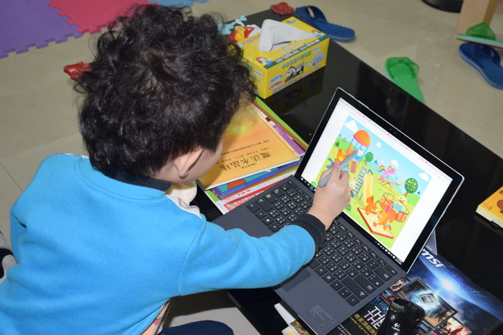 > 才肯乖乖的配合刷牙及睡覺, Surface Pro 4 的大螢幕 也讓如媽比較
