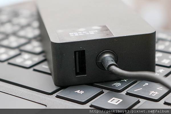 充電器本身也很有巧思的在變壓器這邊作了一個USB充電孔,可以順便一起充其他的設備~