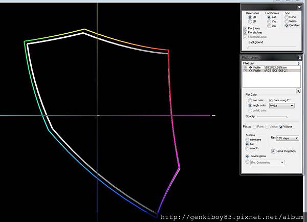Surface Pro 4 採用的是三星的SDC3853,從面板的供料資料庫找出這片面板的解析度是2736x1824的3k面板,色域達72%NTSC,為了確定這螢幕的色域有達到這個標準,我用校色器取得了Surface Pro 4的色域(彩框)跟sRGB的色域(灰色框)交叉比對,發現這螢幕的確有符合標sRGB的標準,很適合拿來修圖使用