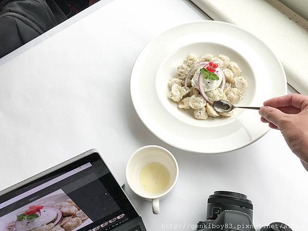 在經過12/20從清晨5點拍到中午12點的鐵人拍攝行程之後,隔天接著又要繼續拍菜單用的照片,但前一天的照片都還沒整理完,在等廚師上菜之前先利用空檔整理檢視前一天的照片~
