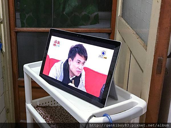 平常晚上沒事的時候就是家庭電視時間,會在客廳陪老媽看電視,這時候順便可以寫寫文章,回回FB喇賽之類的,雖然Surface Pro 4不像筆記型放在腿上可以這麼穩,不過角度喬得好還是可以的使用,若是坐姿有調整的話還是要在重新喬一下角度,另外,使用時間長的話會因為腳架受力面積的關係腿上會有印子