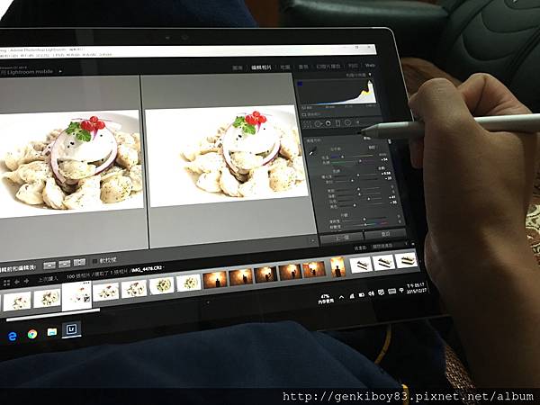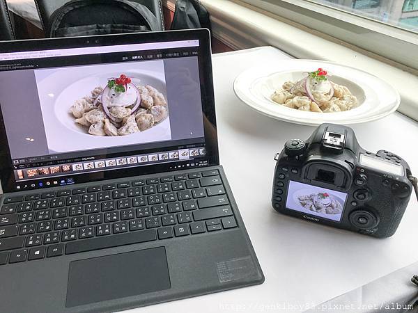 在拍攝菜色的過程中,因為每一道之間的間隔比較長,所以我可以拍完之後直接把照片先存進Surface Pro裡面,透過螢幕檢視照片的品質跟顏色