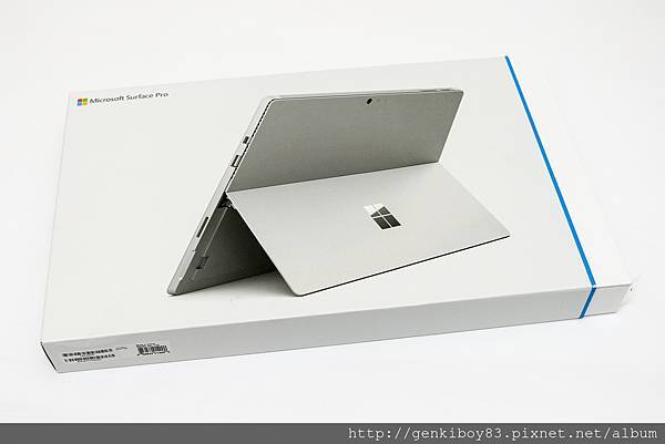 Surface Pro 4 的外包裝很特殊,外面的襯套不是剛好包住裡面那層盒子,會突一塊出來,藍線以右就是多出來的那截