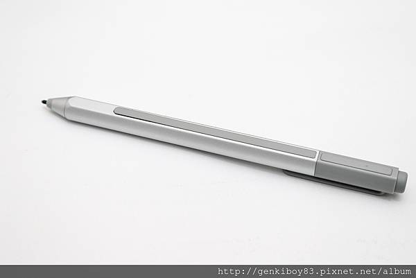 Surface Pro 4的筆這次把其中一面削平了,為的是能夠讓筆能夠比較穩固的吸附在機身側邊,筆的側邊有一顆按鍵,最後面具有數位橡皮擦功能,可以在畫圖的時候擦掉筆跡