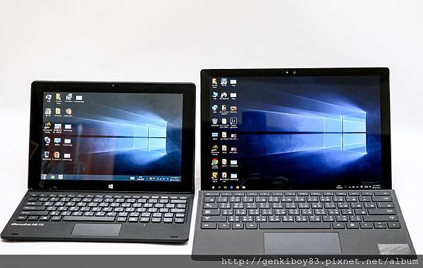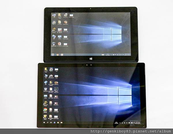 雖然Surface Pro 4號稱12.3吋,但其實感覺上並沒有很大台的感覺,剛好我自己自前也有買了一台10.1吋的GenPad E10T3W,市面上滿多二合一的平板也都是這個尺寸,所以剛好可以拿來比對一下大小~