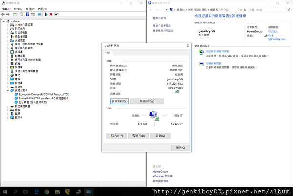 Surface Pro 4 採用的是2T2R的AC無線網路,很多人在買筆電的時候都會忽略到這點,很多筆電的網卡都是採用802.11n的而已,最高傳輸速度可能只能到150Mbps或是300Mbps,如果要在區網中傳輸大量影片或是照片的時候那真是慢得要人命,所以常常讓人誤以為無線網路的傳輸比有線的慢,但原因其實是出在無線網路的環境,因為我自己的無線路由器已經支援802.11AC,所以Surface Pro 4在無線傳輸的速度上就能到達2T2T的最高速度866Mbps,傳輸速度不會比有線的慢太多