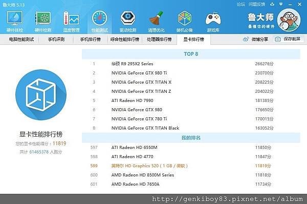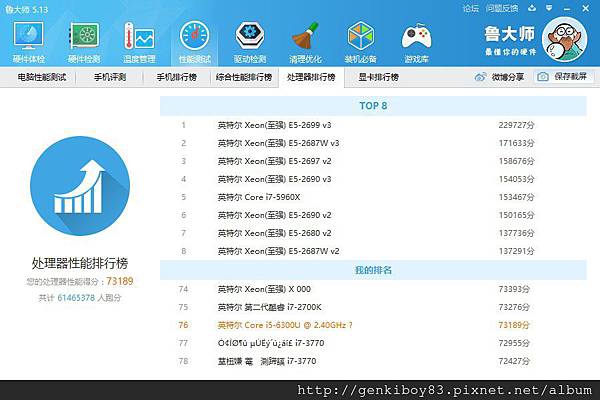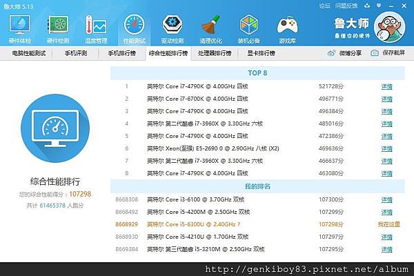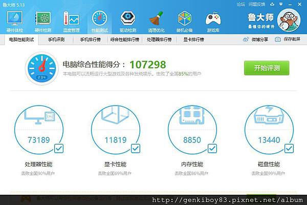 用魯大師跑一下整機的分數~107298,整體效能在前15%,算是不錯的效能