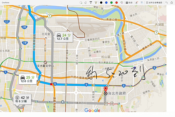 這是我在規劃12/20台北馬拉松拍攝事前交通路線規劃,透過Onenote配上觸控筆可以很方便的截圖並且在上面做筆記,整體使用感覺跟真的在書寫很像~
