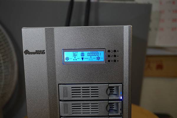 ▼硬碟裝好,起動電源,就可以在正面的液晶顯示幕,看見硬碟狀態、溫度以及網路等資訊,旁邊的按鍵蠻小顆的不是很好按。