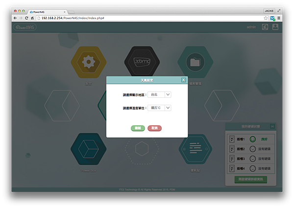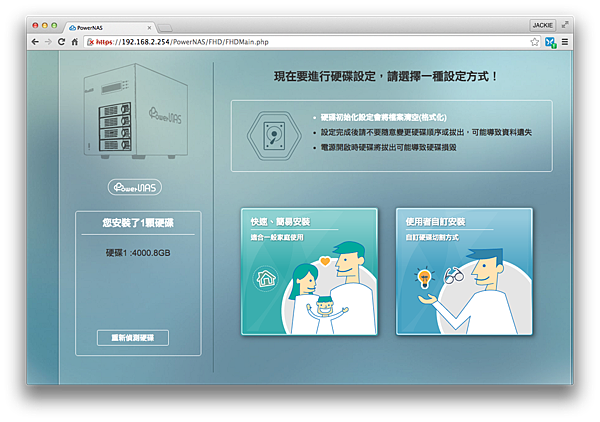 圖形化的介面,還算親切,全中文化的介面讓我設定起來,不會擔心受怕會弄掛 NAS。