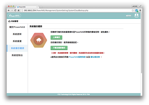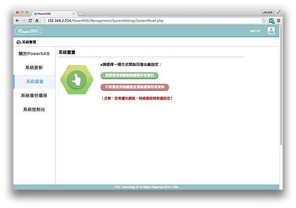 ▼看一下關於 PowerNAS 各項按鈕介紹吧 …