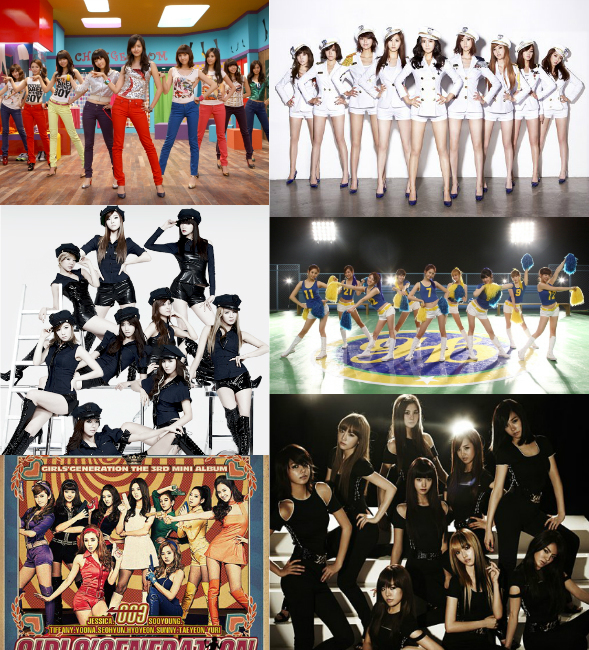 從2009年開始的《Gee》以彩色鉛筆褲造成風潮、《Genie》男性粉絲暴增的海軍制服風、《Oh!》再度讓歐巴們陷入瘋狂的啦啦隊、《Run Devil Run》首次出現的黑暗少時、《Hoot》復古龐德女郎、《Mr.Taxi》計程車運將(?)...等等,她們百變的造型真的說不完,而且不管是甚麼樣的風格都能輕易的消化。