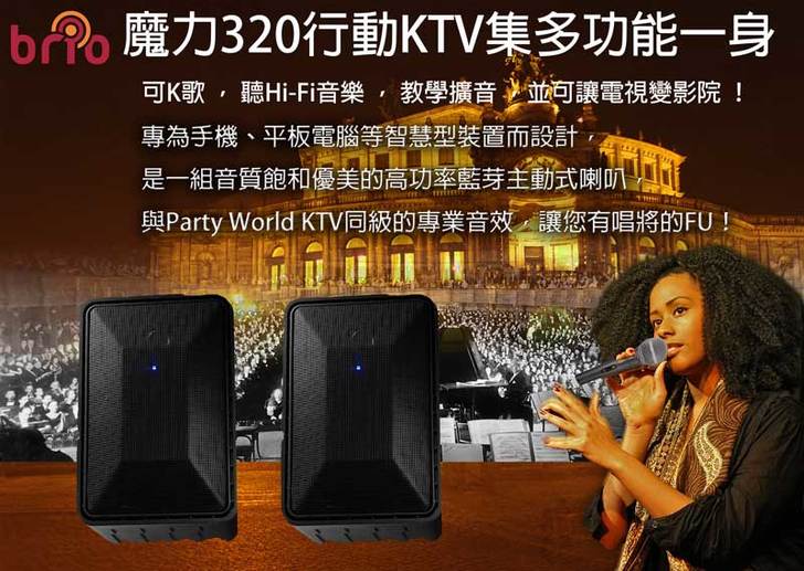 brio 魔力320 多功能專業行動KTV,不僅可隨身帶隨時唱,其強而有力的音場震撼力,帶給您有如家庭劇院般的感官娛樂效果!!!