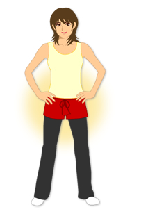首先,兩手插腰,雙腳打開與肩同寬。
