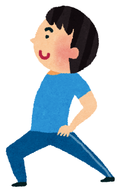 右腳往前跨一大步,把重心放在右腳,右膝蓋成90度直角。左腳則是腳尖著地,後腳跟離地,這樣做會感覺小腿肚有伸展到。維持動作5~10秒,回原位再左右交替,一邊以10次為一組,一天大概做兩組。