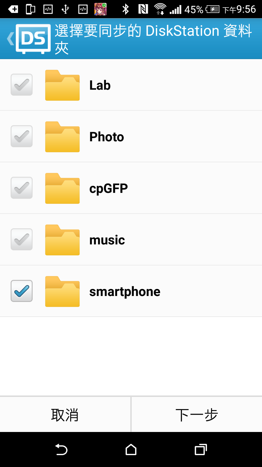 ▼ 選擇好要同步的資料夾後,就可以開始同步手機和 Synology DS415+ NAS 的指定資料夾了。