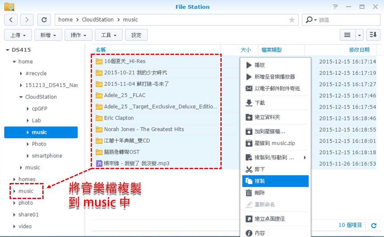 1. 用電腦連 Synology DS415+ NAS 來聽音樂