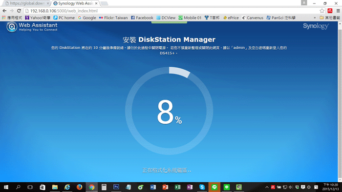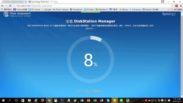 ▼ 這時候就會開始 Synology DS415+ NAS 雲端伺服器 DiskStation Manager 的安裝了。
