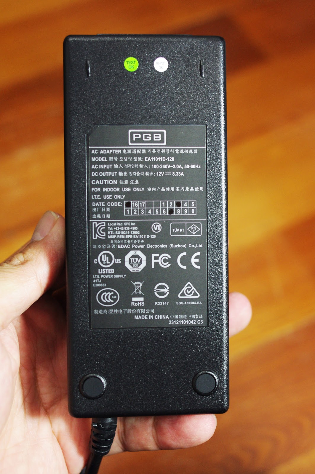 ▼Synology DS415+ NAS的變壓器,適用電壓是100 ~240 V ,輸出的電壓是 12V ,電流是 8.33 A 。