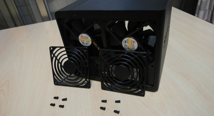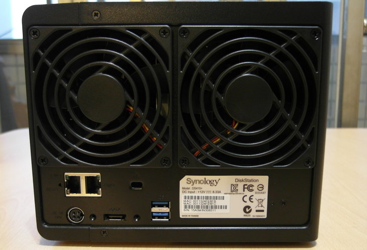 NAS的背面就是兩個大風扇,以利硬碟溫度過高時可以直接散熱。