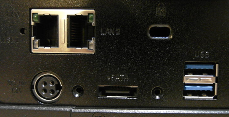 DS415+的連接埠比較簡單,只有一些常用的。一共有網路孔x2、eSATA埠x1、USB3.0連接埠x2、肯辛頓鎖孔x1和電源供應器接口x1。