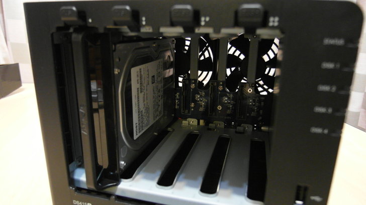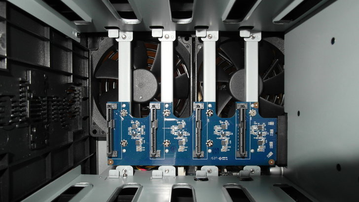 整台NAS的內部主要只有容納硬碟的空間,並且直對兩個風扇排風,使硬碟擁有較好的散熱效果!
